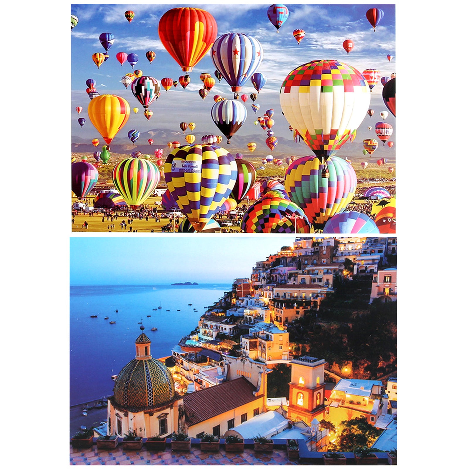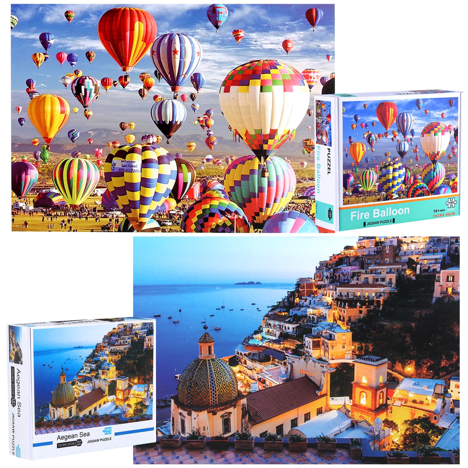 Package includes: each package comes with 2 sets of adult jigsaw puzzles, including hot air balloon style and Aegean style, each style has 1000 pieces, and the size of the jigsaw puzzles is 70 x 50 cm/27.6 x 19.7 inches