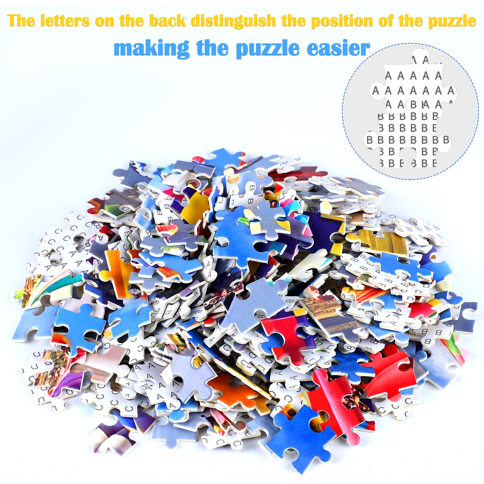 Letter division: the letters are printed on the back of each small puzzle, and different letters represent different areas, which is convenient for you to complete the whole puzzle; you can complete the puzzle quickly according to the drawings presented